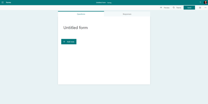 - To share your form, navigate to the ‘Send’ button to the top right of the Ribbon.