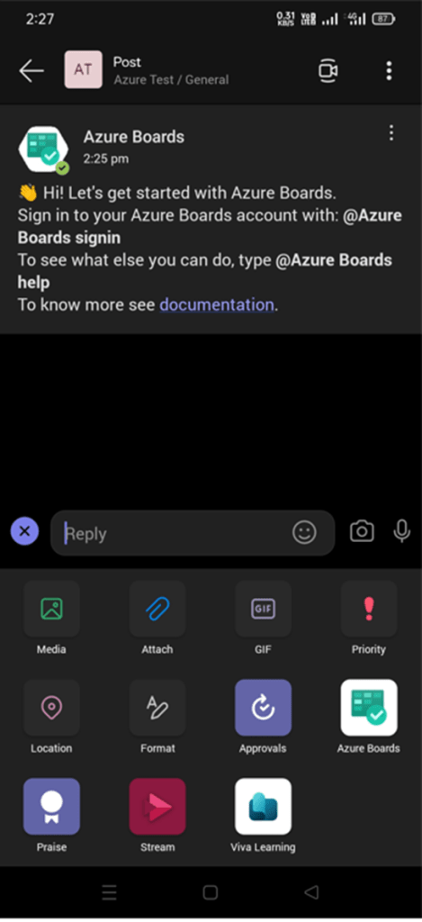 You can also set up the Azure Boards application on Teams using the mobile application. To do this, follow the steps below: